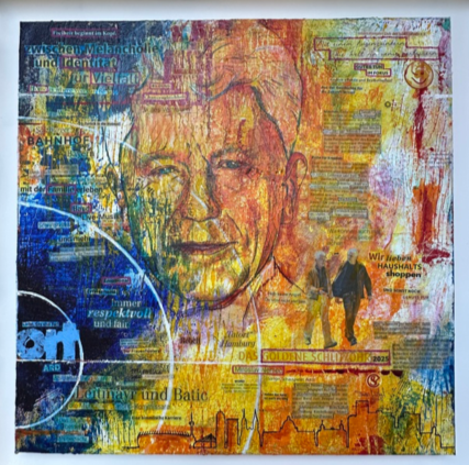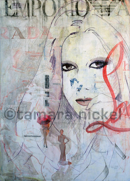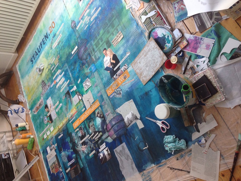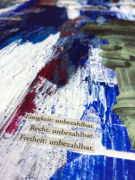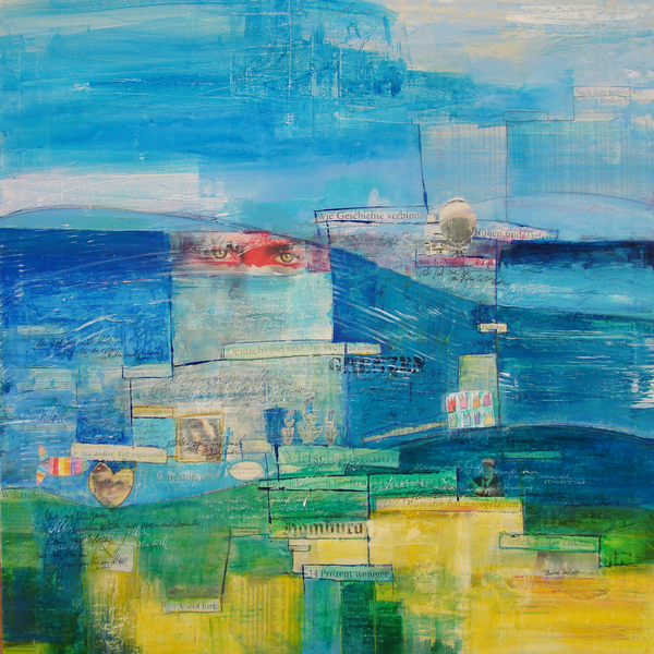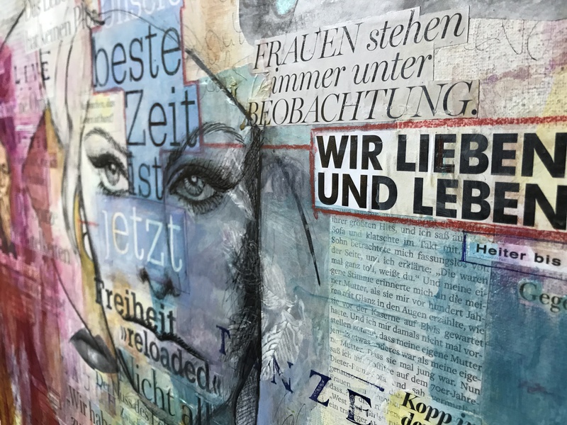Die Collagetechnik unterstützt dabei die inhaltliche Vielschichtigkeit: Sie ermöglicht es mir, Botschaften auf verschiedenen Ebenen sichtbar zu machen. So laden meine Bilder zum genauen Hinsehen ein