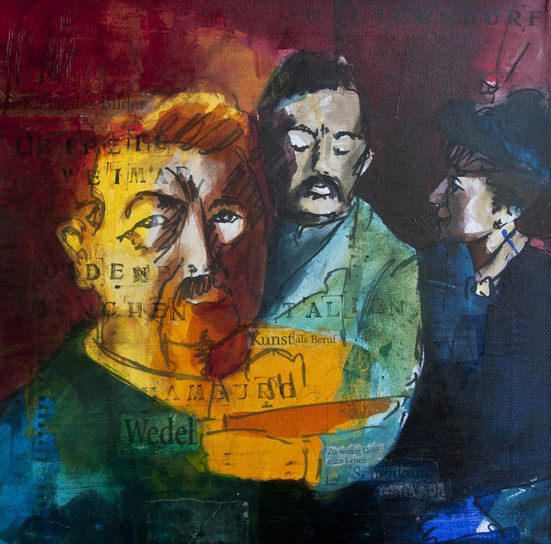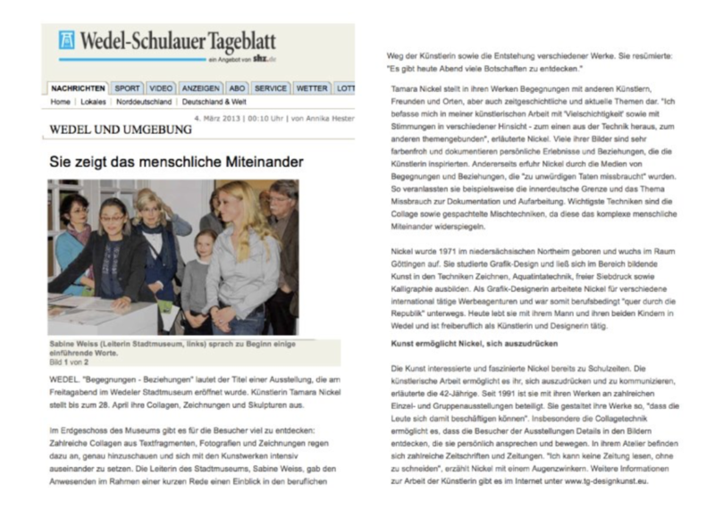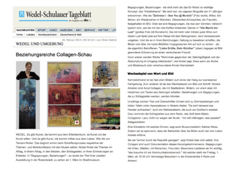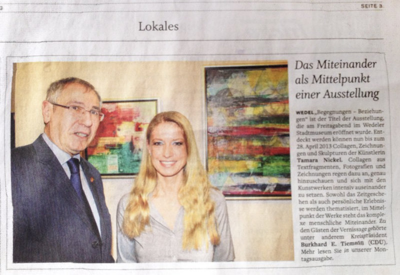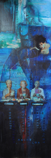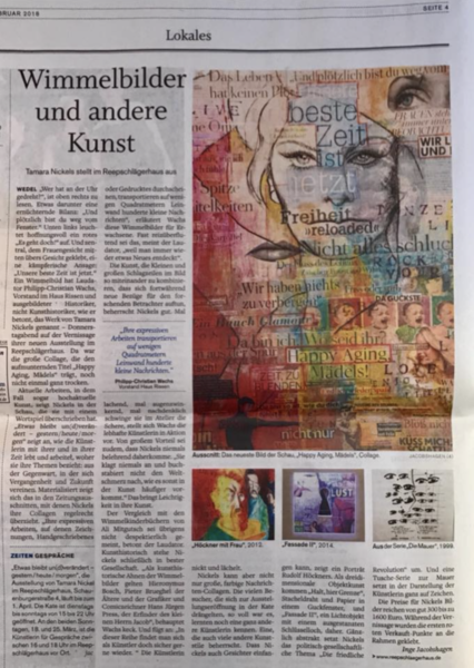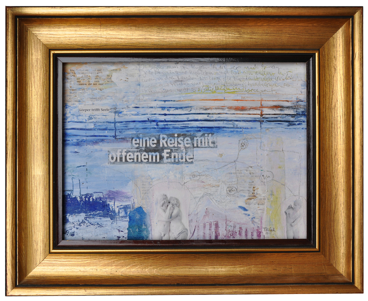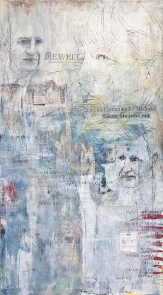 Jahre erweitere ich meine Arbeiten zunehmend durch Text- und Bildfragmente aus Zeitungen und Zeitschriften. Die thematisch gebundene, erzählerische Arbeitsweise gewinnt dabei immer mehr an