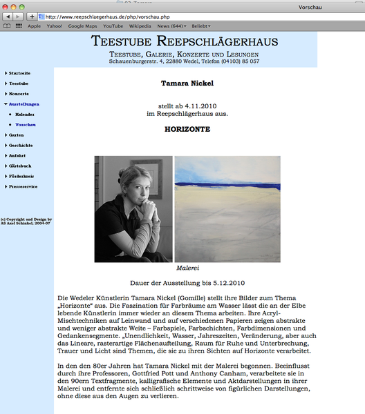 Meine künstlerische Laufbahn begann in den 1980er Jahren als Schülerin des Künstlers und Kunsterziehers und Künstlers Heinz Rackowitz (Northeim).
